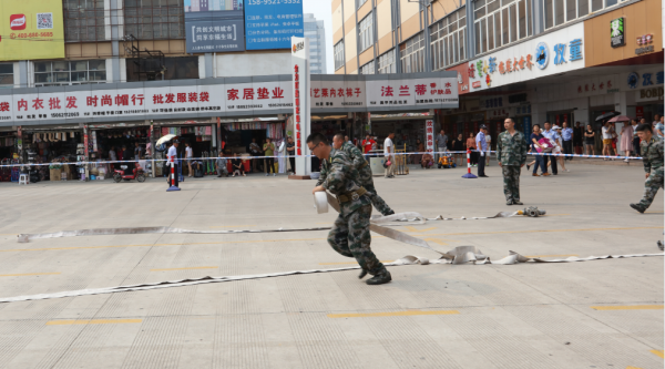 2017年6月28日,宣武集團(tuán)在商貿(mào)城開展消防綜合演練活動?;顒又校瘓F(tuán)經(jīng)濟(jì)護(hù)衛(wèi)隊、市場業(yè)戶、消防隊進(jìn)行了擒敵拳、班隊列、消防水帶連接、滅油盆火4個項目業(yè)務(wù)技能匯報表演,并與云龍消防大隊聯(lián)合進(jìn)行了一次滅火和應(yīng)急疏散演練。通過演練,進(jìn)一步提升了職工、業(yè)戶的消防安全意識和應(yīng)急處置能力。房管局系統(tǒng)、云龍區(qū)相關(guān)領(lǐng)導(dǎo)及駐市場工商、稅務(wù)等領(lǐng)導(dǎo)觀摩演練,并對演練效果給予高度評價。